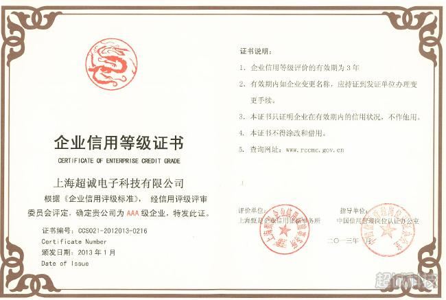 企業(yè)信用等級(jí)證書